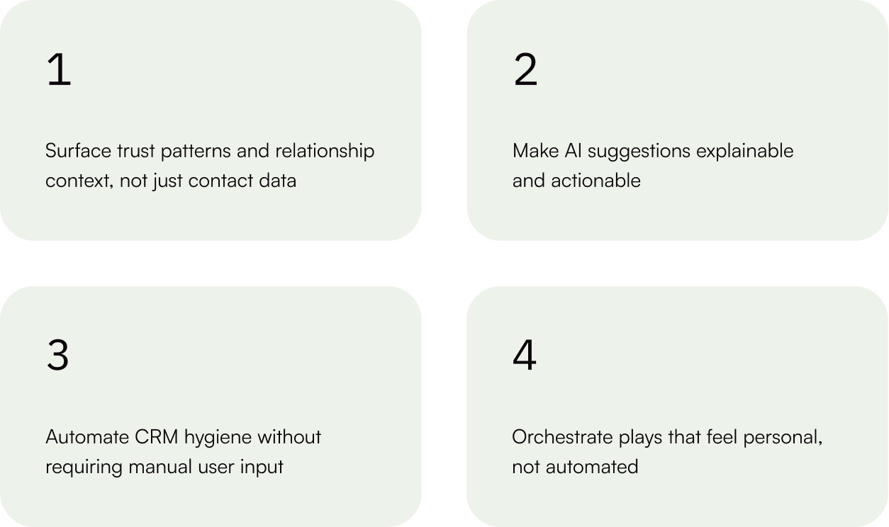 With buying committees growing larger and sales cycles extending longer, the question arose: How might we help revenue teams convert fragmented GTM signals into prioritized, actionable, and relationship-driven pipeline opportunities without disrupting their existing workflows?
